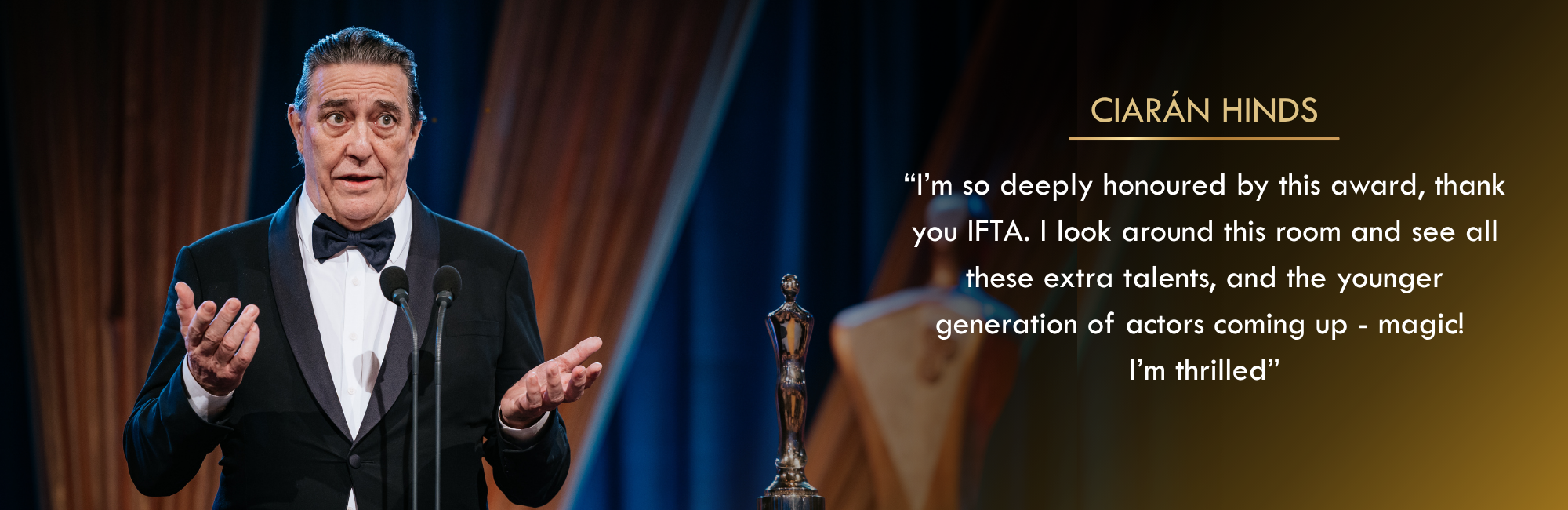 2025 Lifetime achievement for his incredible acting career across five decades both in Ireland and internationally.